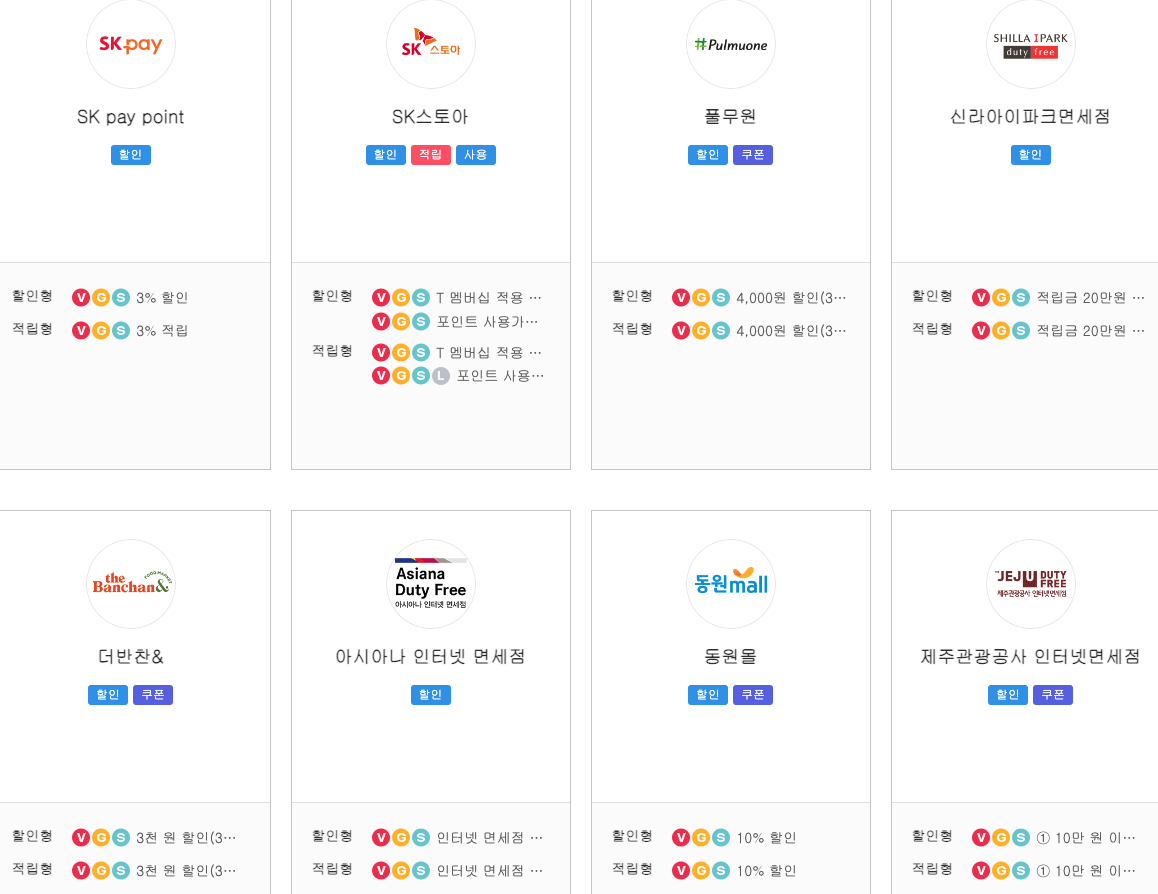 특색있는 쇼핑몰에서도 T멤버십으로 할인 적립 혜택 받으실 수 있습니다.
