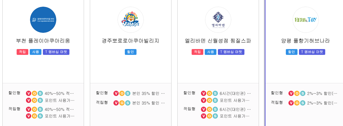 T멤버십을 이용 할인 적립 받을 수 있는 곳은 다양합니다 .
